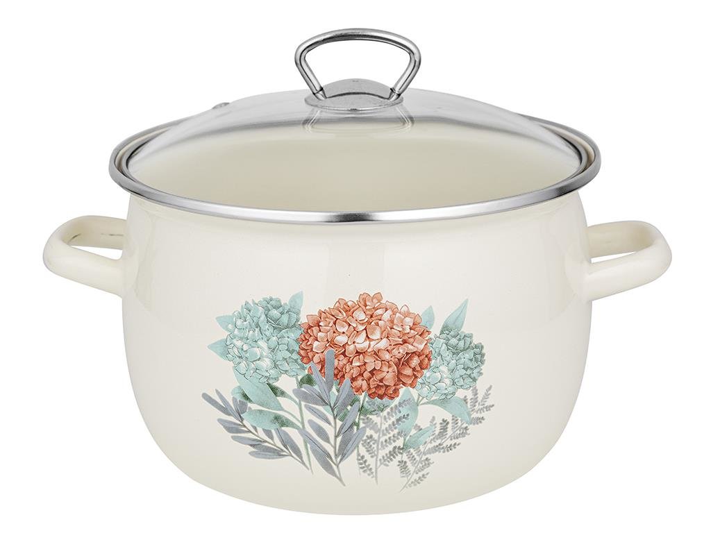 SAMOTOVANÝ KASTROL SUDOVÉHO TVARU - OBJEM 5L, SMALTOVANÉ RUKOJETI, SE SKLENĚNÝM VÍKEM, INDUKCE