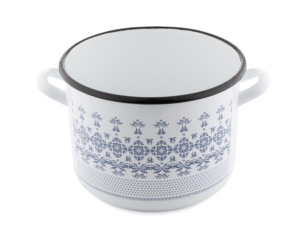 Hrnec smaltovaný, bez pokličky, úchyty smaltované, tloušťka 0,7mm, 22cm, 6,25L, indukční. Zdravé a hygienické: smalt chrání potraviny proti pronikání škodlivých kovových iontů a na hladkém povrchu se nemnoží bakterie. smalt možnost vaření na indukční desce originální design polského designéra nereaguje s potravinami, nejbezpečnější způsob, jak uložit potraviny do ledničky