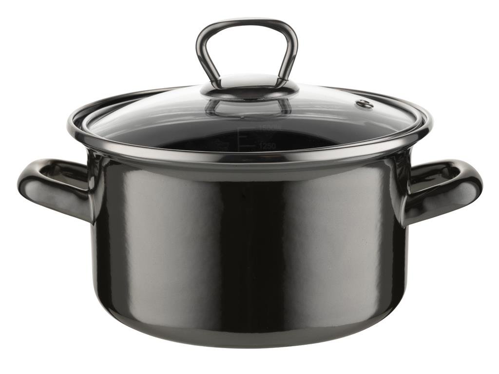 Smaltovaný hrnec Metalico 16 cm, objem 1,9 l, smaltované úchyty, skleněná poklička, vhodný na všechny typy varných desek, včetně indukce číst celé
