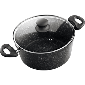 Kastrol opatřen vnitřním marble povrchem odolným proti oděru a připalování, silným dnem a velmi elegantní soft rukojetí