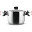 Poklička s cedícím mechanismem z nerezavějící oceli se speciálním zachycením pomocí výklopných rukojetí pro komfortní cedění těstovin
