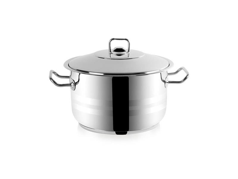 Velký hrnec z kvalitní nerezové oceli 18/10 s termoakumulačním dnem zajistí úsporné, ekonomické a efektivní vaření.