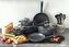 Sada hrnců je dokonalým řešením pro zdravé a pohodlné vaření. Nepřilnavý mramorový povrch umožňuje přípravu pokrmů s minimálním množstvím tuku a zároveň je odolný proti poškrábání. Díky 5vrstvému dnu hrnce zajišťují rychlé a rovnoměrné zahřívání, což přispívá k úspoře energie. Antibakteriální vlastnosti povrchu poskytují dodatečnou ochranu při přípravě jídel. Sada obsahuje 4 hrnce různých velikostí (1,3 L, 2,3 L, 4,5 L, 6,8 L), 2 pánve a praktické příslušenství jako skleněné poklice, silikonové podložky a kuchyňské náčiní z termoplastického nylonu. Elegantní černý design hrnců skvěle doplní každou kuchyni. Sada je kompatibilní se všemi typy sporáků, včetně indukce.