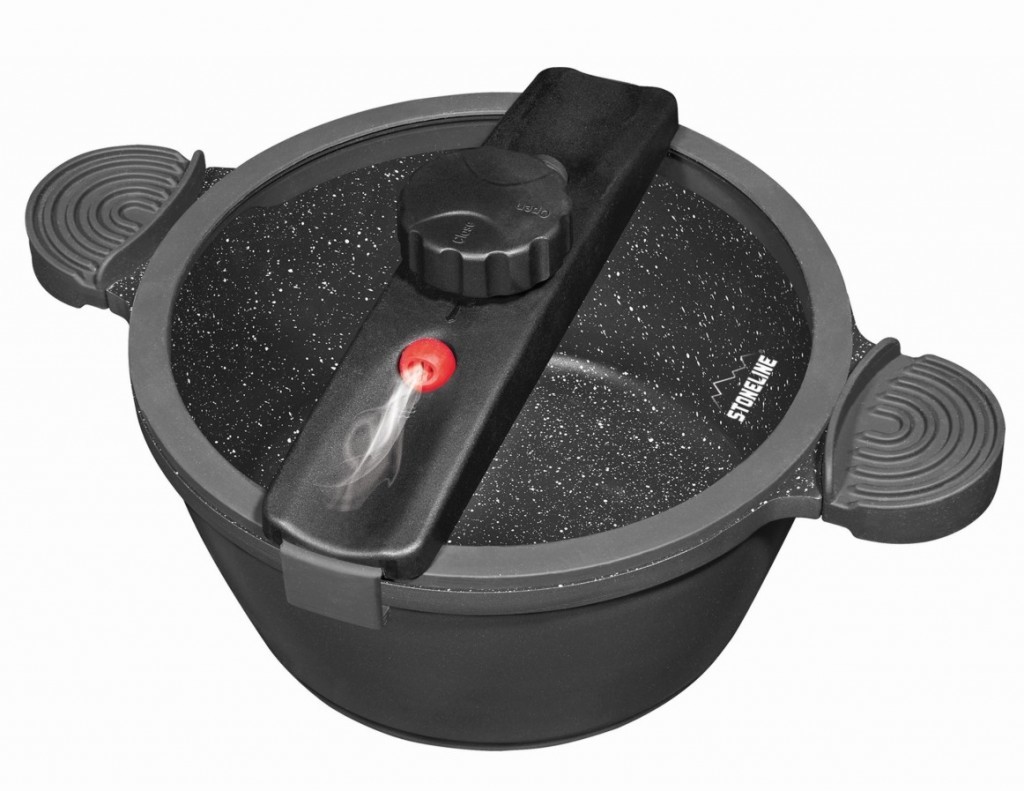 Vařte a smažte zdravě bez tuku, s nízkotlakým hrncem od německé značky STONELINE. Tento hrnec umožňuje šetrný způsob úpravy pokrmů a výrazně zkracuje dobu vaření a to na všech typech sporáků. Vaření pod mírným tlakem je rychlejší, připravované pokrmy jsou chutné a šťavnaté a navíc si zachovají všechny minerály i vitamíny.