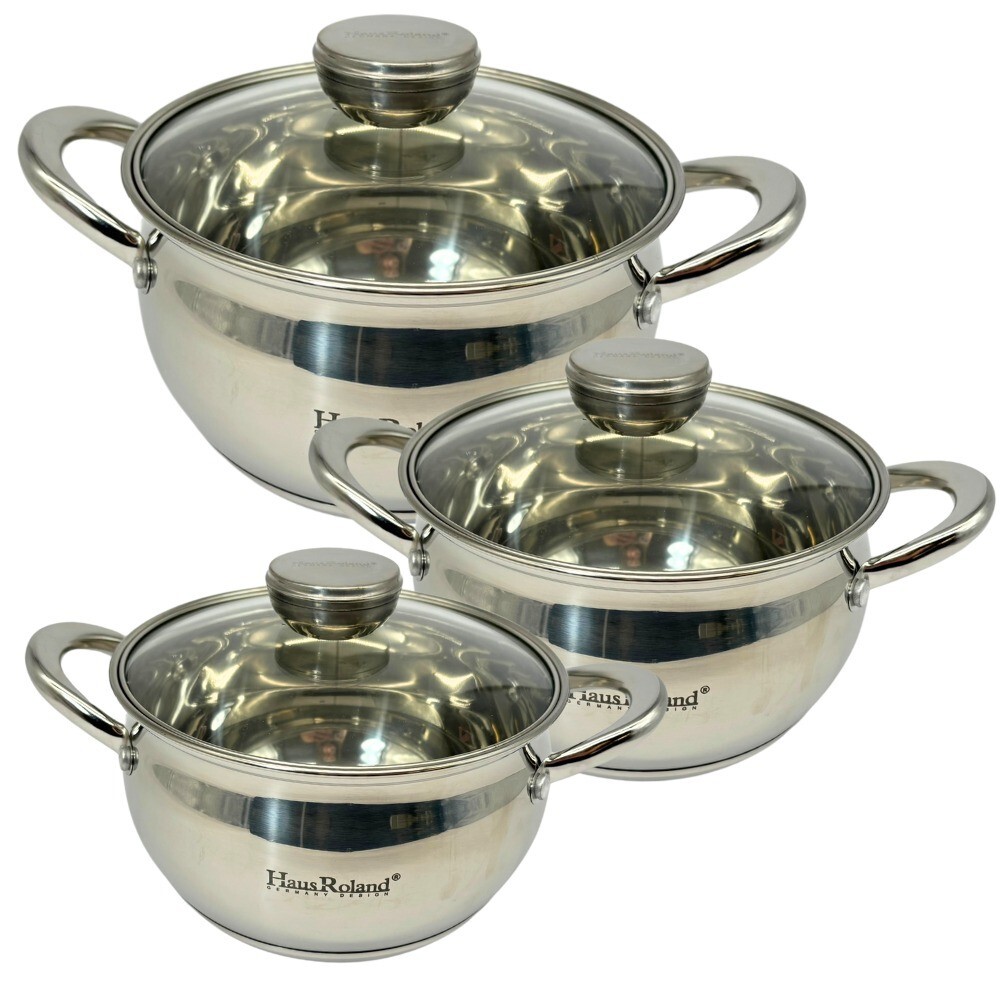 Sada nerezového nádobí 6 dílná. Povrch v kombinaci matu a lesku. Sendvičové dno pro rovnoměrný a rychlý ohřev. Speciálně tvarované okraje hrnců usnadňující rozlévaní bez rostřikování. Skleněné poklice jsou opatřeny otvorem pro únik páry. Vhodné pro všechny druhy sporáků včetně indukce.