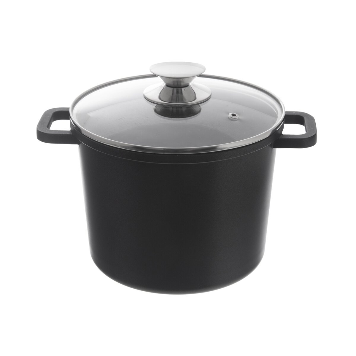 Masivní hliníkový hrnec je vybaven moderním nepřilnavým povrchem, který usnadňuje čištění a výrazně snižuje potřebu tuku při vaření. Poklice z kombinace skla a nerezu je opatřena otvorem pro únik přebytečné páry, což zajišťuje optimální podmínky pro přípravu vašich pokrmů. Hrnec je vhodný pro všechny typy sporáků, včetně indukčních, a zvládne i použití v troubě při teplotě až do 200 °C.