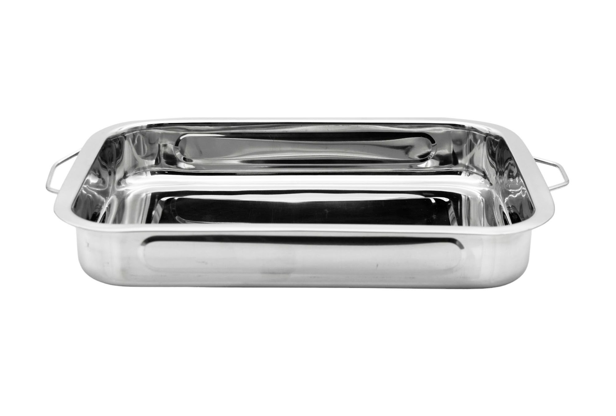 Nerezový pekáč bez poklice vybavený sklopnými ručkami pro pohodlné přenášení. Vhodný pro plynové a elektrické trouby. Rozměry 35 x 27 x 5.5 cm. Vhodný do myčky nádobí a do trouby. EAN 5902738219264