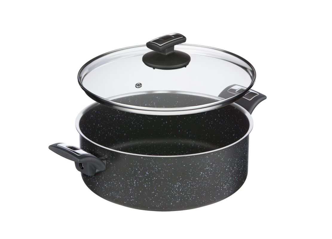 KOLIMAX BLACK GRANITEC je vyroben v České republice a nabízí nádobí s unikátním černo-šedým granitovým povrchem, který skvěle vypadá i při pravidelném používání. Tento masivní rendlík s nepřilnavým povrchem je navíc vyztužen keramickými částicemi, což zajišťuje jeho zvýšenou odolnost proti poškrábání a snadnou údržbu. Díky rozměrům 26 cm a objemu 4,5 litru je perfektní pro přípravu větších porcí jídel nebo oblíbených omáček. Součástí je poklice, která pomáhá udržovat teplo a vlhkost během vaření, čímž zachová více chutí a živin v jídle.