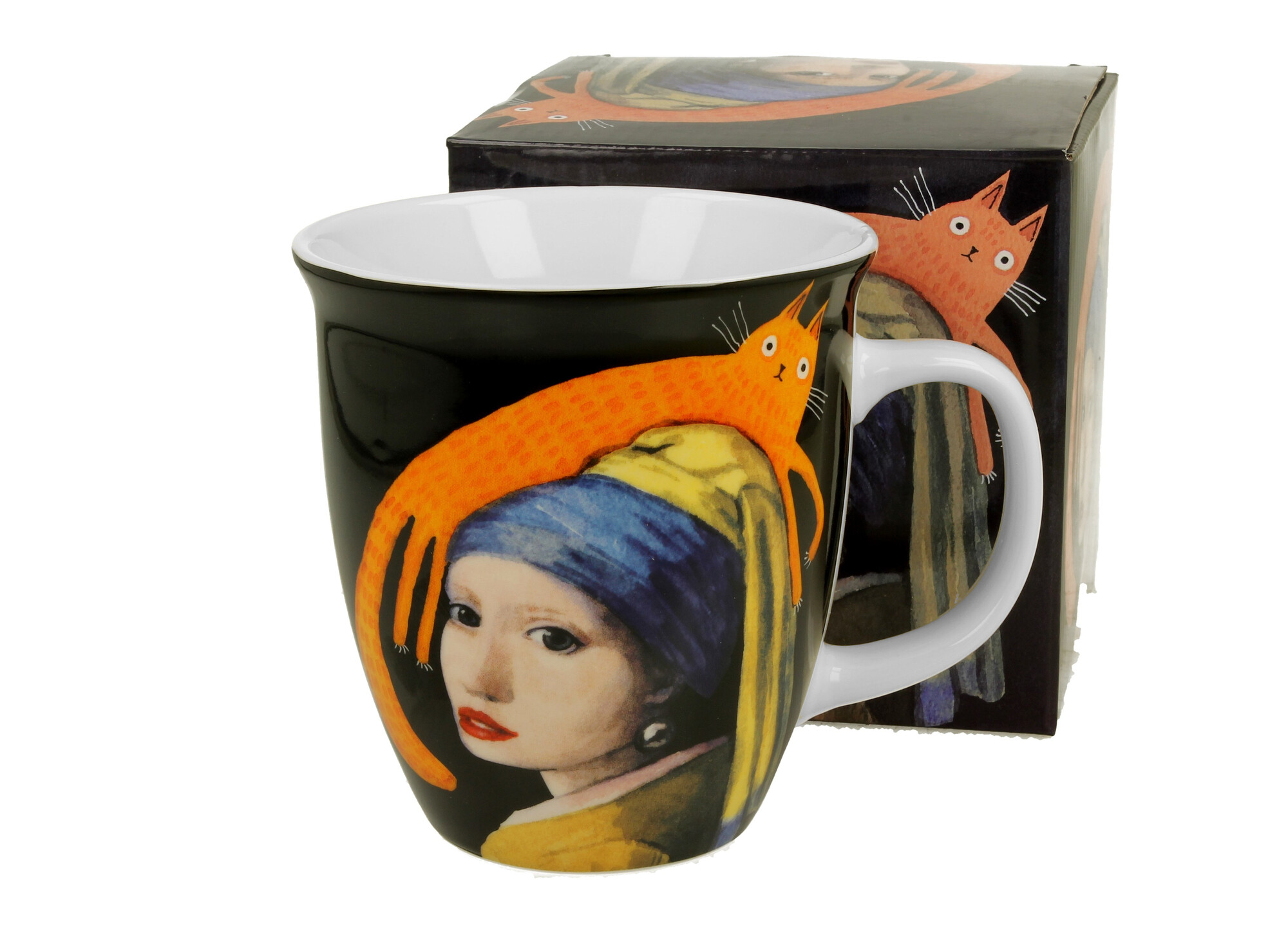 Linia została starannie zaprojektowana z myślą o miłośnikach sztuki i unikalnych przedmiotów. Fantazyjny motyw przedstawia kreatywną interpretację obrazu pędzla Vermeera „Dziewczyna z perłą”, na głowie której znajduje się malowany, pomarańczowy kot, dodający całości niepowtarzalnego charakteru. Ten nieszablonowy wzór łączy w sobie elegancję klasycznego malarstwa z nowoczesnym podejściem do designu, co sprawia, że kolekcja jest doskonałym wyborem dla każdego, kto ceni sobie oryginalność.