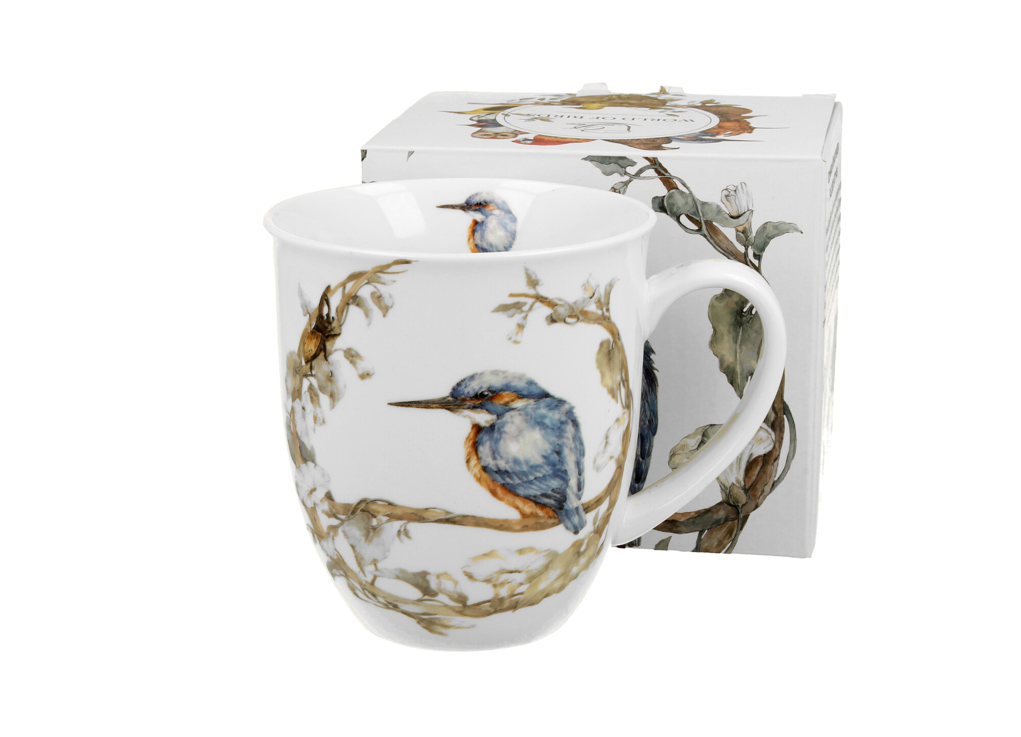 Kubek 650 ml Ptasi Świat ZIMORODEK ZWYCZAJNY wchodzący w skład serii Animals, wykonany z porcelany New Bone China, charakteryzującej się naturalnym kremowo-białym kolorem z delikatnym połyskiem oraz wyjątkową wytrzymałością i trwałością, zachowując lekkość i finezję.