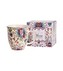 Linia zdobiona motywem fantazyjnego i abstrakcyjnego egzotycznego, kolorowego kwiatu. Jego fantazyjne kształty i dynamiczne linie tworzą efekt lekkości i ruchu, emanując energią i żywiołowością. Otoczony subtelnymi zielonymi gałązkami i drobnymi pąkami, które dodają kompozycji naturalnego charakteru i harmonii.