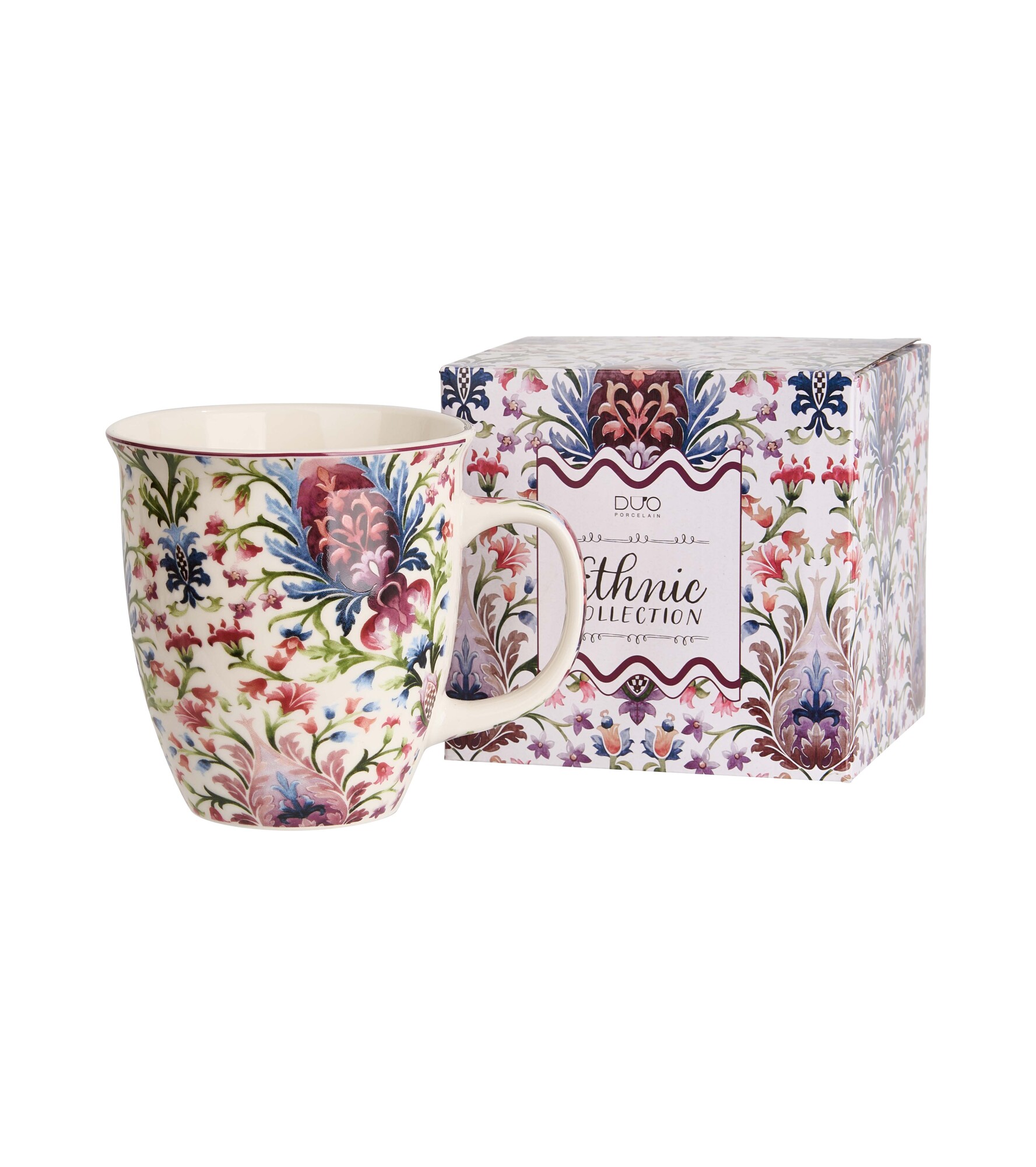 Kubek 650 ml MARBELLA wchodzący w skład linii ETHNIC, wykonany z porcelany New Bone China, charakteryzującej się elegancką i naturalną kremowo - białą barwą z delikatnym połyskiem a także wyjątkową wytrzymałością przy zachowaniu lekkości i delikatności.