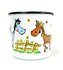 Smaltovaný hrnek s motivem Koně o průměru 7 cm.