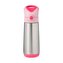 Termoska na pití s brčkem od australské značky b.box přináší dokonalou kombinaci funkčnosti a moderního designu. Je vyrobena z kvalitní nerezové oceli s dvouplášťovou konstrukcí, která zaručuje, že nápoje zůstanou studené až 15 hodin nebo teplé až 8 hodin. Díky praktickému víčku s tlačítkem je otevírání jednoduché a podporuje dětskou samostatnost. Termoska obsahuje měkké silikonové brčko, které umožňuje pohodlné pití bez rozlití, a držátko pro snadné nošení či zavěšení na batoh nebo kočárek.