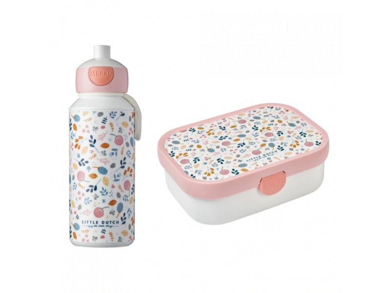 Svačinovou sadu tvoří láhev s vyskakovacím pítkem a svačinový box s možností rozdělení na tři přihrádky.