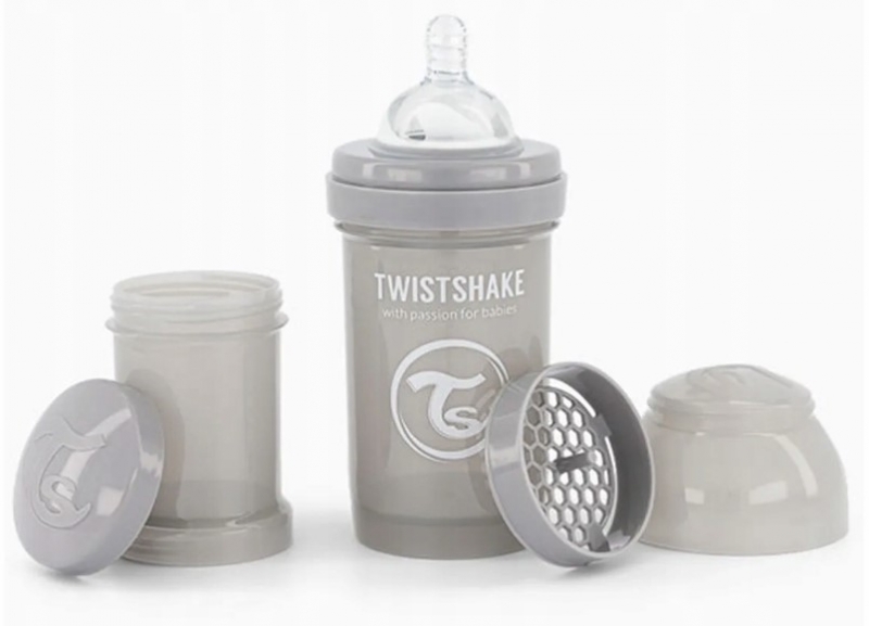 Antikoliková láhev, Twistshake se savičkou, 0 m+, 180 ml, Pastel Grey