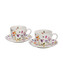Komplet dwóch filiżanek ze spodkami MAY wchodzący w skład linii Kwiaty Classic wykonany z porcelany New Bone China, która charakteryzuje się naturalnym kremowo-białym kolorem z delikatnym połyskiem oraz wyjątkową wytrzymałością i trwałością.