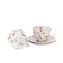 Komplet dwóch filiżanek ze spodkami SAFA wchodzący w skład linii Kwiaty Classic wykonany z porcelany New Bone China, która charakteryzuje się naturalnym kremowo-białym kolorem z delikatnym połyskiem oraz wyjątkową wytrzymałością i trwałością.