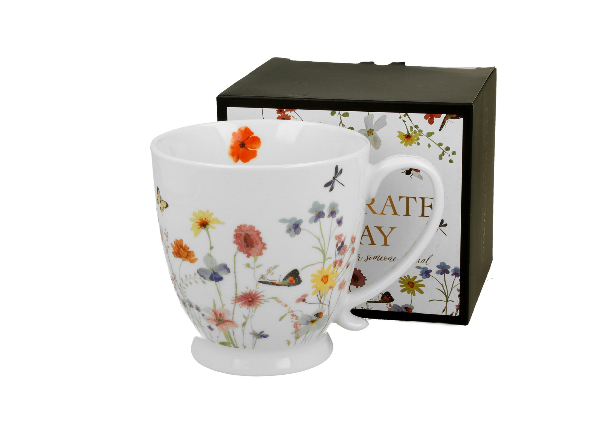 Kubek na stopce AMELIA wchodzący w skład serii Kwiaty Royal, wykonany z porcelany New Bone China, charakteryzującej się elegancką i naturalną kremowo - białą barwą z delikatnym połyskiem, a także wyjątkową wytrzymałością.
