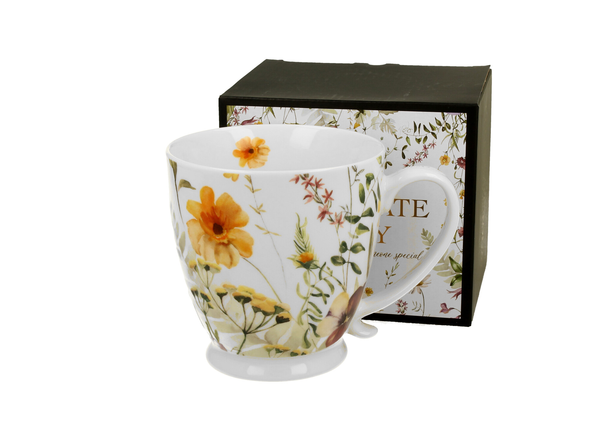 Kubek na stopce PANSY wchodzący w skład serii Kwiaty Royal, wykonany z porcelany New Bone China, charakteryzującej się elegancką i naturalną kremowo - białą barwą z delikatnym połyskiem, a także wyjątkową wytrzymałością.