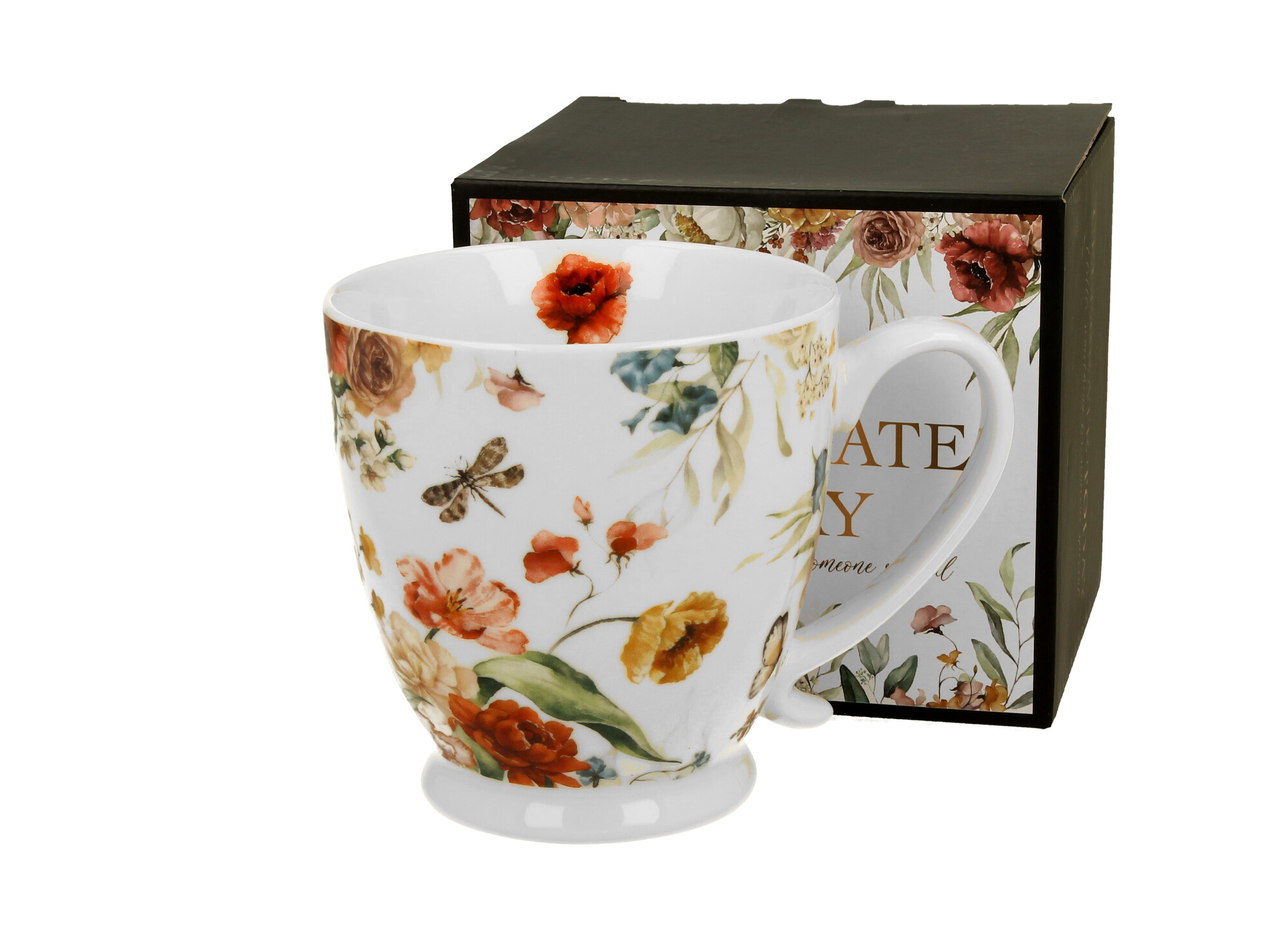 Kubek na stopce REBECCA wchodzący w skład serii Kwiaty Royal, wykonany z porcelany New Bone China, charakteryzującej się elegancką i naturalną kremowo - białą barwą z delikatnym połyskiem, a także wyjątkową wytrzymałością.