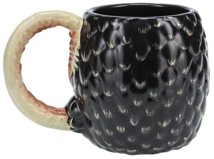 Keramický hrnek připomíná dračí vejce ze seriálu Game of Thrones, House of the Dragon. Díky zlatému designu šupin a rukojeti ve tvaru zlatého dračího ocasu je tento hrnek ideální pro držení čerstvého nápoje. Hrnek ve tvaru dračího vejce je ohromující nadměrný hrnek, který bude rád používat každý fanoušek fantasy.