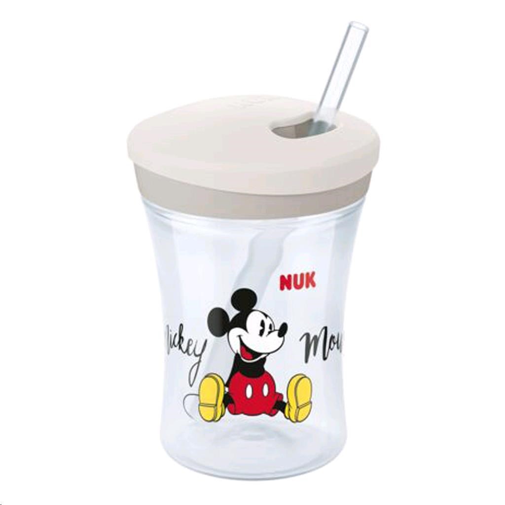 Dětský hrníček NUK Disney Mickey Mouse Action Cup 230 ml. Otočením praktického šroubovacího víčka se brčko zasune. Na cestách se brčko otočením víčka zasune, a vše tak zůstane suché a čisté. Tento hrneček má také ventil, který zaručuje bezproblémové pití. Každý nástavec je navržen tak, aby vyhovoval jednotlivým učícím fázím a bylo snadné ho se zvyšujícími se schopnostmi dítěte vyměnit. Všechny tři nástavce jsou zcela bezpečné proti vytečení.