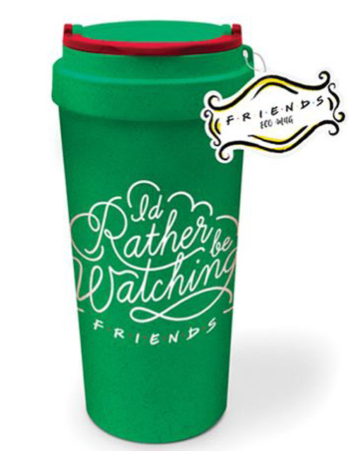 Zelený plastový cestovní hrnek se šroubovacím víčkem a grafikou amerického seriálu Přátelé. Na hrnku se objevuje logo Central Perk a nápisem I´d rather be watching.