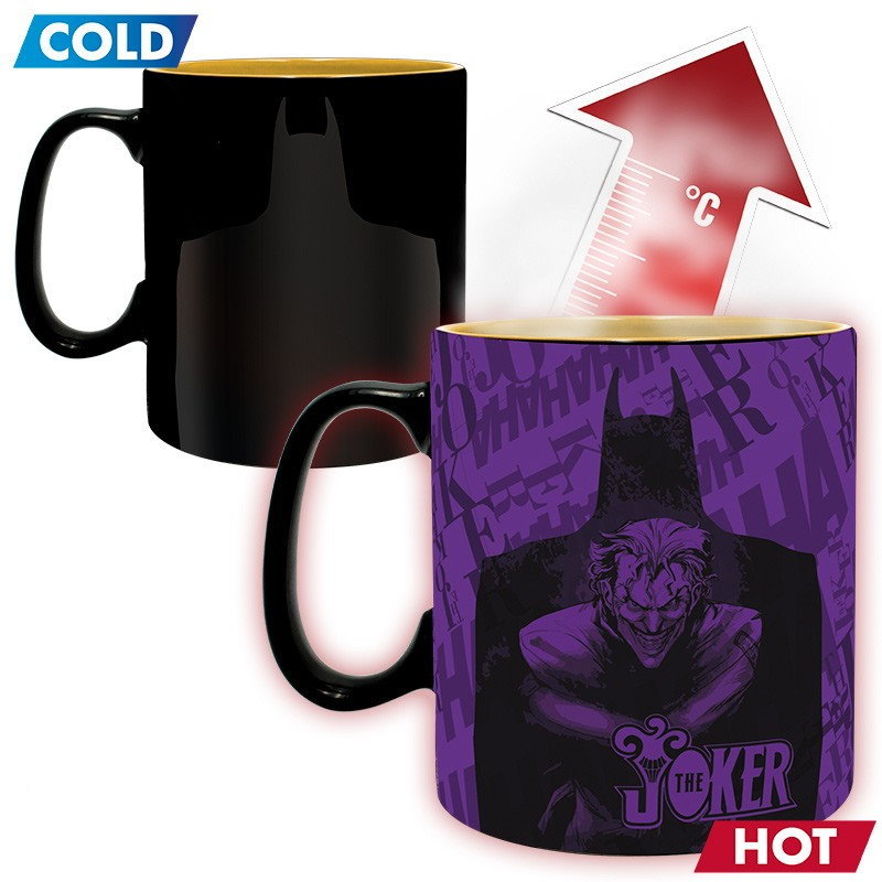 Co by byl Batman bez Jokera? Temný rytíř je vždy pronásledován smíchem a ďábelským úsměvem svého soka v zápase o město Gotham. Připomeňte si nesmrtelnou dvojici z univerza DC Comics krásným matným keramickým hrnkem, jehož grafika reaguje na teplotu nápoje nalitého dovnitř. Hrnek není vhodný do mikrovlnky ani do myčky. Materiál: keramika