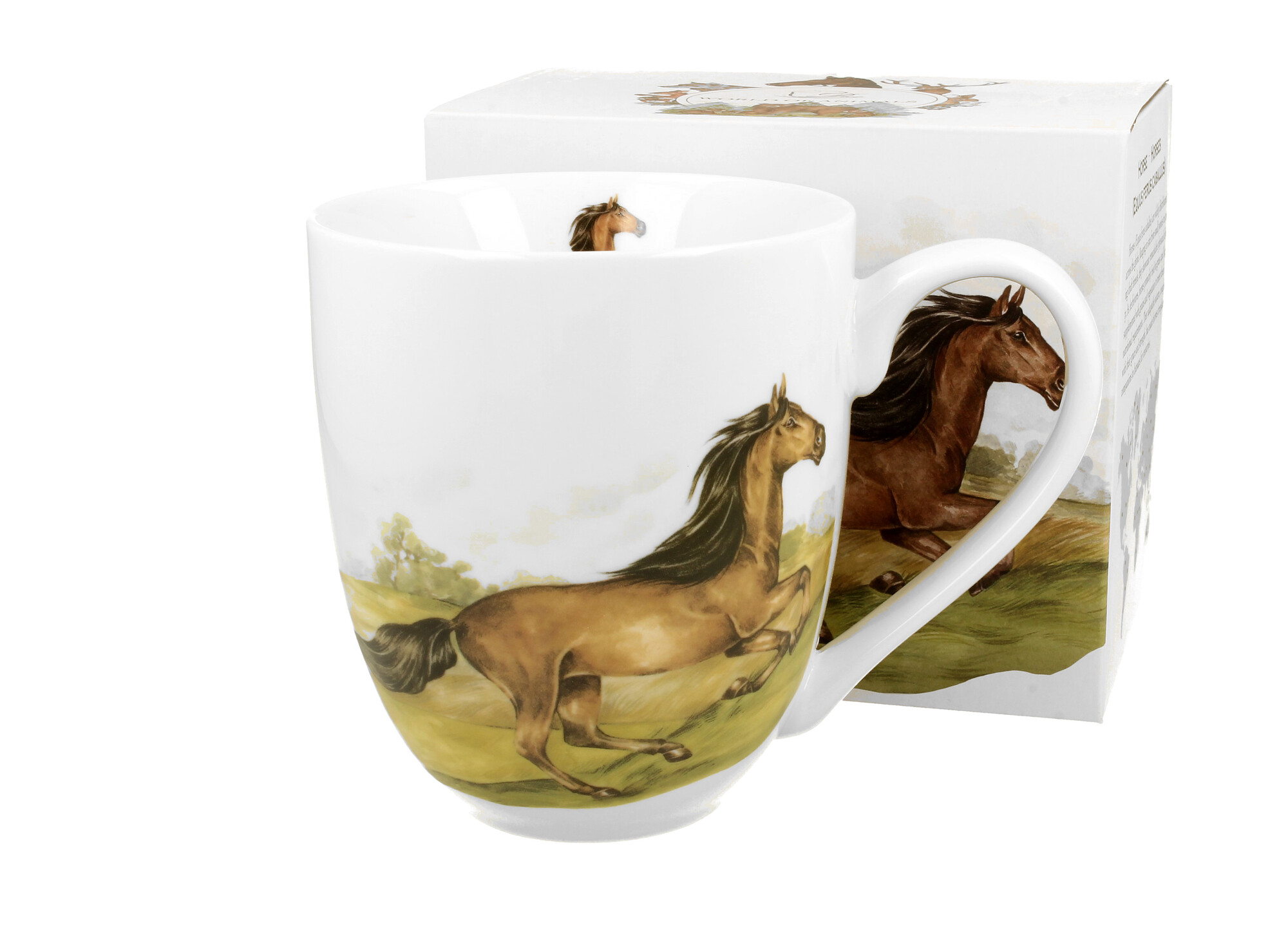 Kubek zdobiony dynamicznym wzorem majestatycznego konia galopującego po otwartej przestrzeni łąki. Całość emanuje radością, wolnością i harmonią z naturą, idealnie oddając ducha dzikich, nieokiełznanych koni.