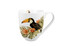 Kubek zdobiony motywem tukana umieszczonego w kompozycji egzotycznych kwiatów i palmowych liści. Niezwykły kolorowy dziób z połączeniu z intensywnie czarnymi piórami tworzy niepowtarzalny efekt wizualny.