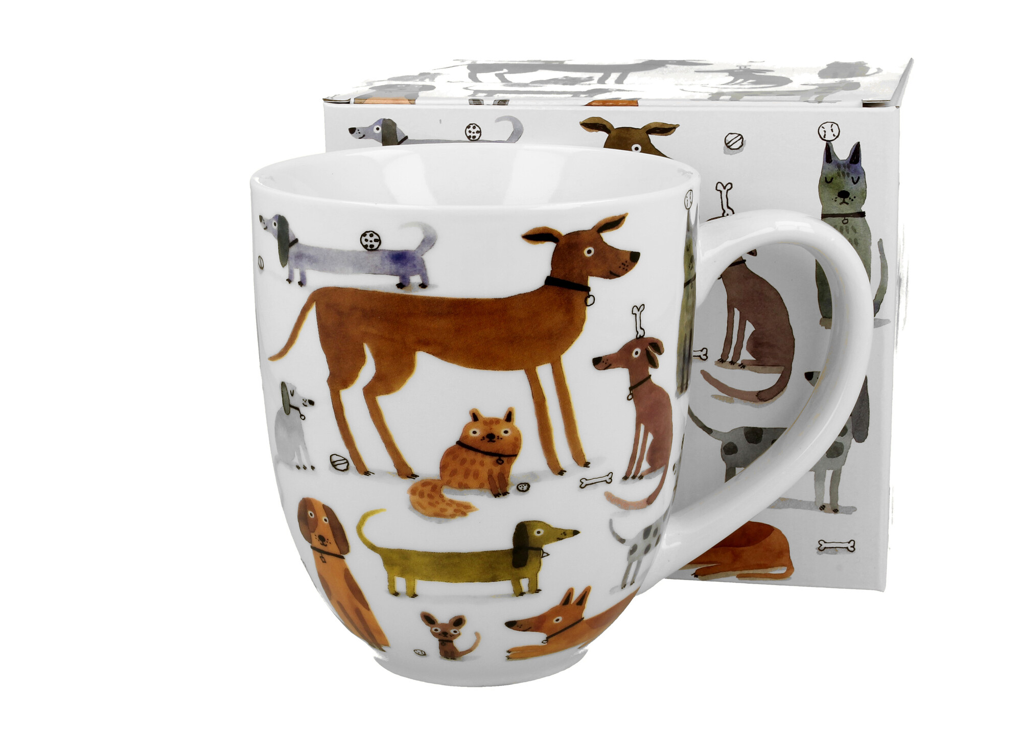 Kubek XXL Psi Świat RÓŻNE PSY wchodzący w skład linii Animals, wykonany z porcelany New Bone China, charakteryzującej się elegancką i naturalną kremowo - białą barwą z delikatnym połyskiem a także wyjątkową wytrzymałością przy zachowaniu lekkości i delikatności.