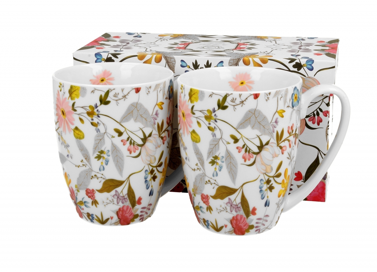 Design hrnků je ozdoben jemnou kompozicí pastelových květů, éterických listů a větviček, což je charakteristickým rysem Kilburnovy botanické tvorby. Tento nádherný vzor zobrazuje květiny a přírodní motivy, které umocňují eleganci a jemnost celého kousku.