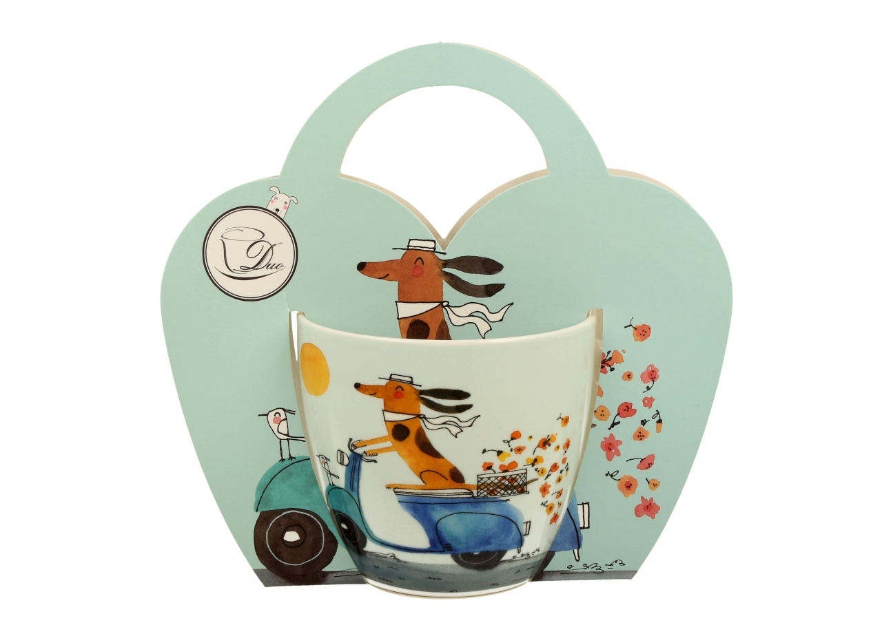 Porcelánový hrnek Pes na skútru 460 ml v dárkové taštičce