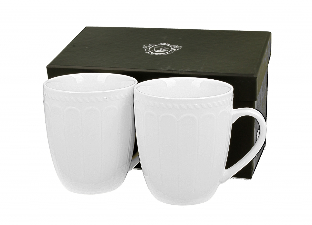 Set dvou hrnků TWILIGHT, součást exkluzivní kolekce WHITE, vyrobených z prvotřídního porcelánu s vyztuženou strukturou. Tento materiál vyniká svou vysokou odolností a bílou barvou s jemným, elegantním leskem.