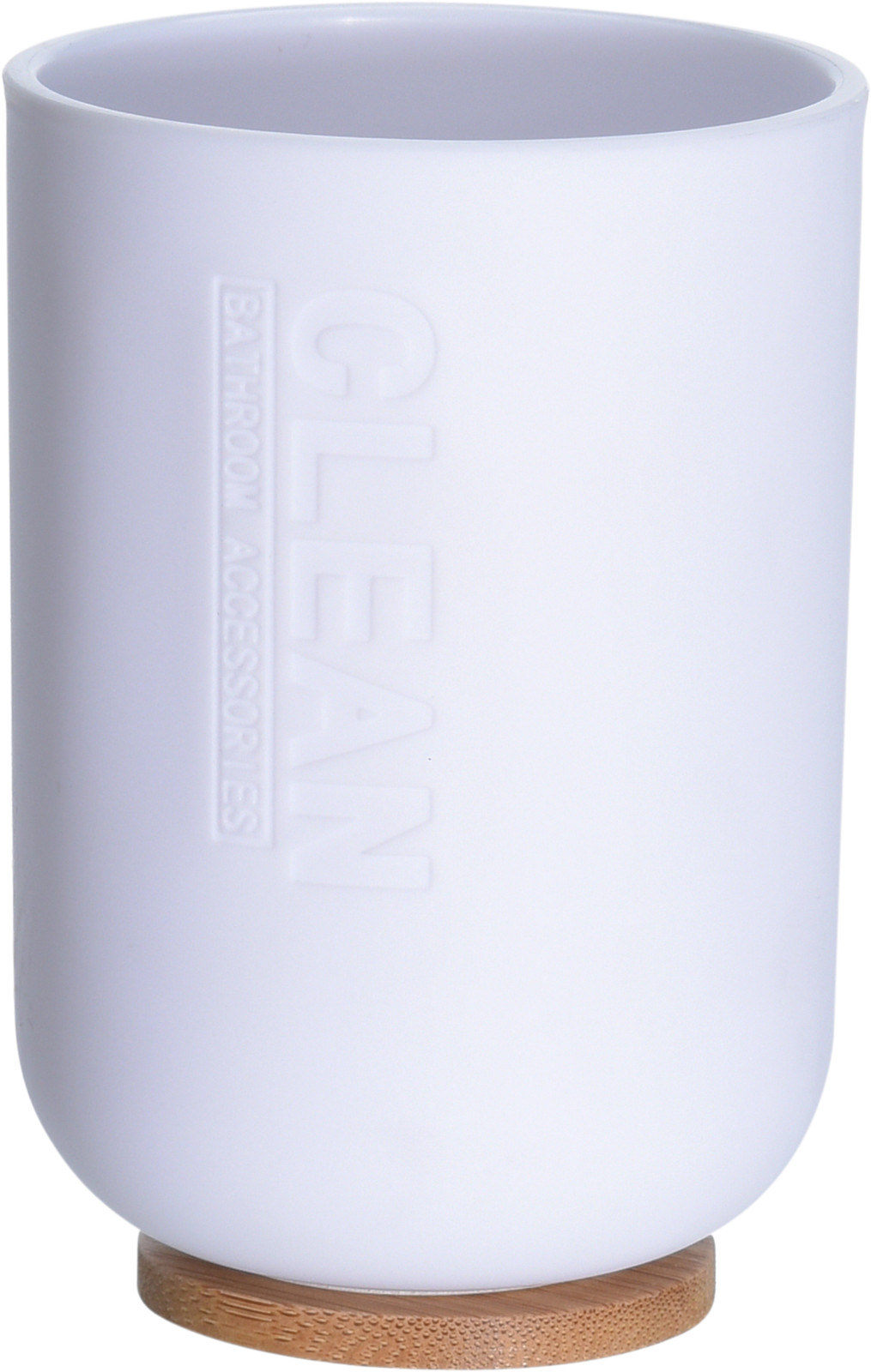 Kubek łazienkowy z tworzywa sztucznego w kolorze białym o pojemności: 300ml pojemność kubka: 300 ml średnica kubka: 7,3 cm wysokość: 10,5 cm kolor kubka: biały materiał: tworzywo sztuczne podstawa: bambus