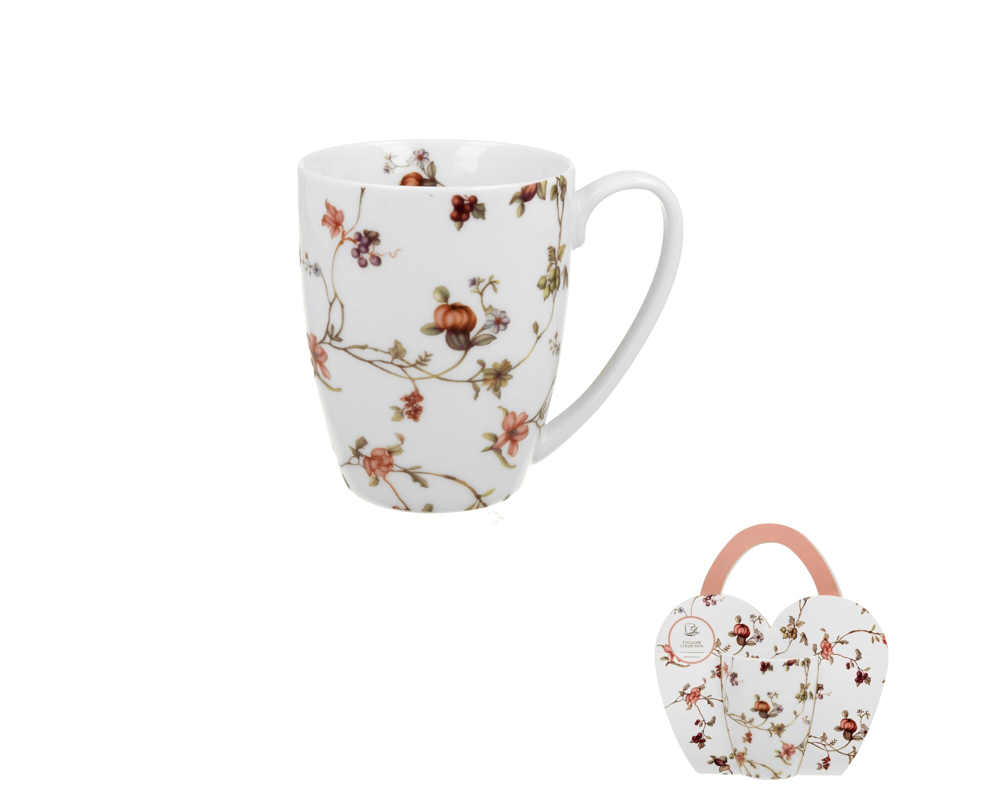 Kubek classic w koszyczku SAFA wchodzący w skład serii Five o\'clock, wykonany z porcelany New Bone China, która charakteryzuje się naturalnym kremowo-białym kolorem z delikatnym połyskiem oraz wyjątkową wytrzymałością i trwałością, zachowując lekkość i finezję.