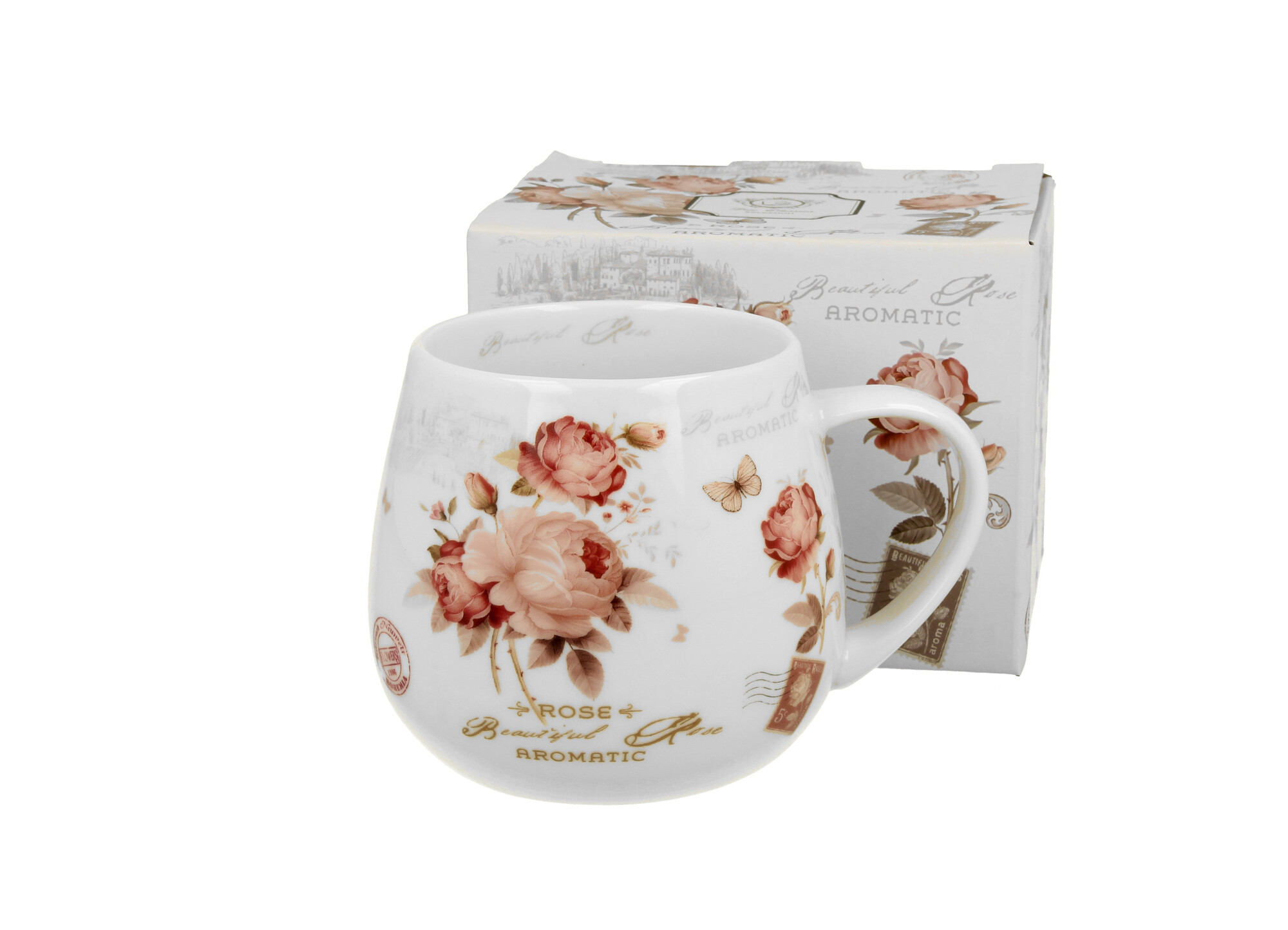 Kubek baryłka 430 ml Secesja wchodzący w skład serii Duo Classic, wykonany z porcelany New Bone China, charakteryzującej się elegancką i naturalną kremowo - białą barwą z delikatnym połyskiem, a także wyjątkową wytrzymałością. Linia zdobiona motywem różanych kwiatów oraz znaczków pocztowych. Ciepła i stonowana kolorystyka nadaje linii klasyki i elegancji.