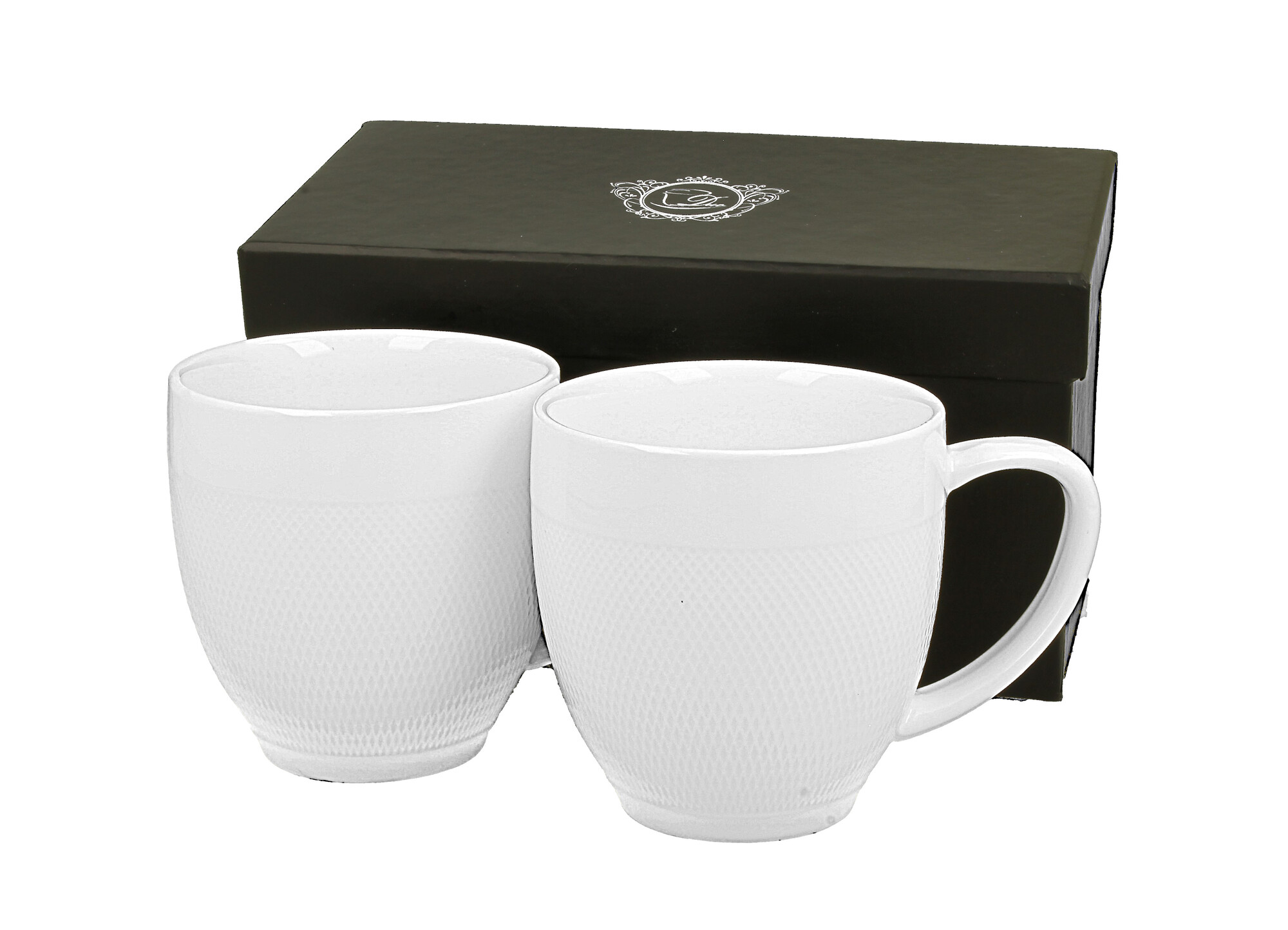 Komplet 2 kubków DIAMOND wchodzący w skład kolekcji BIAŁEJ. Zastawa stołowa wykonana z wysokiej jakości wzmocnionej porcelany Durable w kolorze białym z delikatnym połyskiem, wyróżniająca się wyjątkową wytrzymałością.