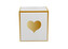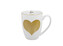 Kubek zdobiony ogromnym sercem w kolorze intensywnego złota na białym tle.