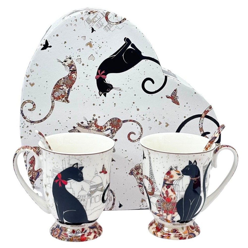 HOME ELEMENTS Sada dvou šálků 280 ml se lžičkami, Kočky