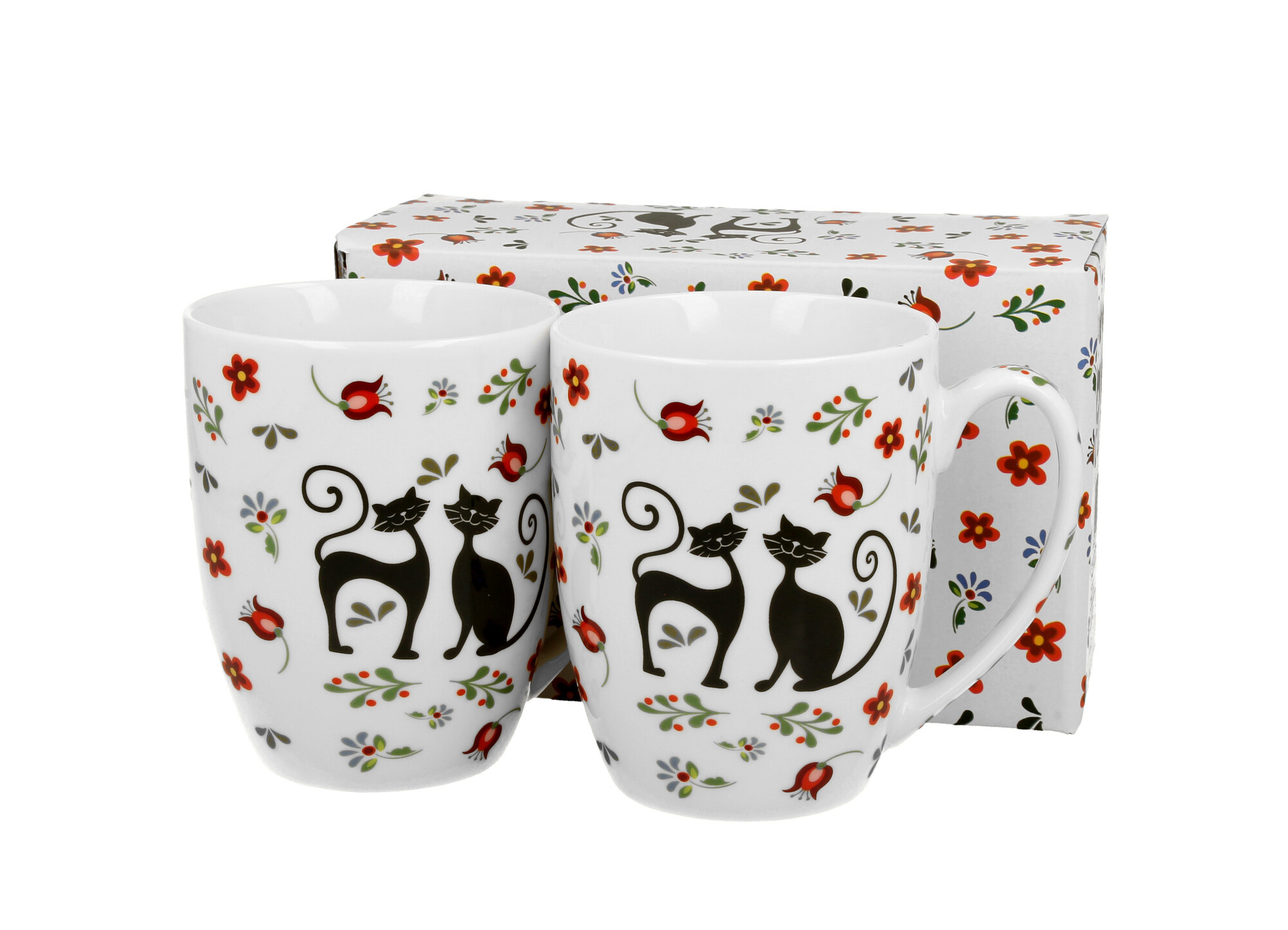 Komplet dwóch kubków KOTY ETNO wchodzący w skład serii CROCUS, wykonany z porcelany New Bone China, która charakteryzuje się naturalnym kremowo-białym kolorem z delikatnym połyskiem oraz wyjątkową wytrzymałością i trwałością, zachowując lekkość i finezję.