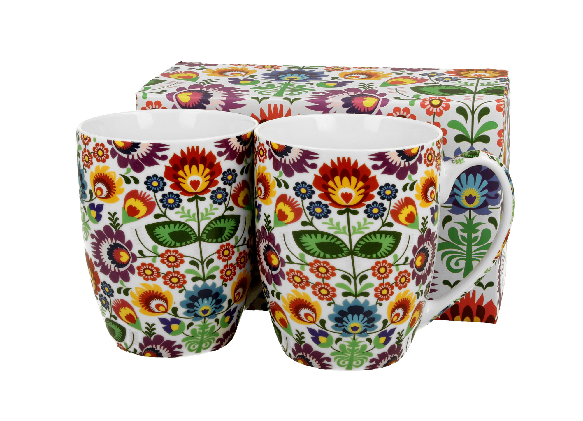 Całość zapakowana w ozdobne pudełko dekorowane tym samym motywem doskonale nadaje się na wyjątkowy prezent lub jako elegancki element dekoracyjny. Nasza propozycja kubków i filiżanek to również piękna ozdoba kuchni czy jadalni, a dzięki różnym pojemnościom oraz kształtom każdy znajdzie coś dla siebie.