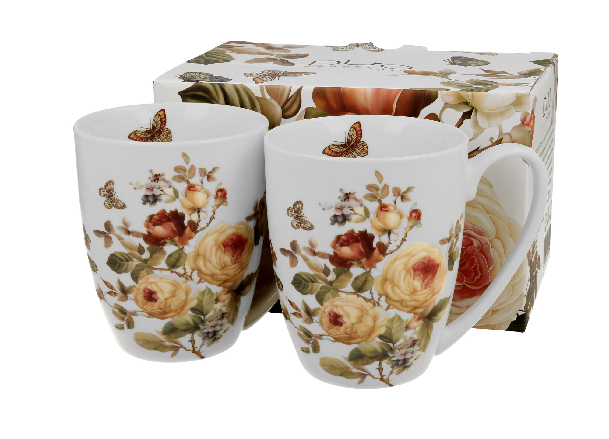 Komplet dwóch kubków classic ZAHRA wchodzący w skład serii Flower Classic, wykonany z porcelany New Bone China, charakteryzującej się elegancką i naturalną kremowo - białą barwą z delikatnym połyskiem, a także wyjątkową wytrzymałością.