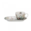 Snídaňová sada - jumbo šálek s dlouhým podšálkem JULY, součást řady Flowers Classic, vyrobená z porcelánu New Bone China, který se vyznačuje přírodní krémově bílou barvou s jemným leskem a výjimečnou pevností a odolností.