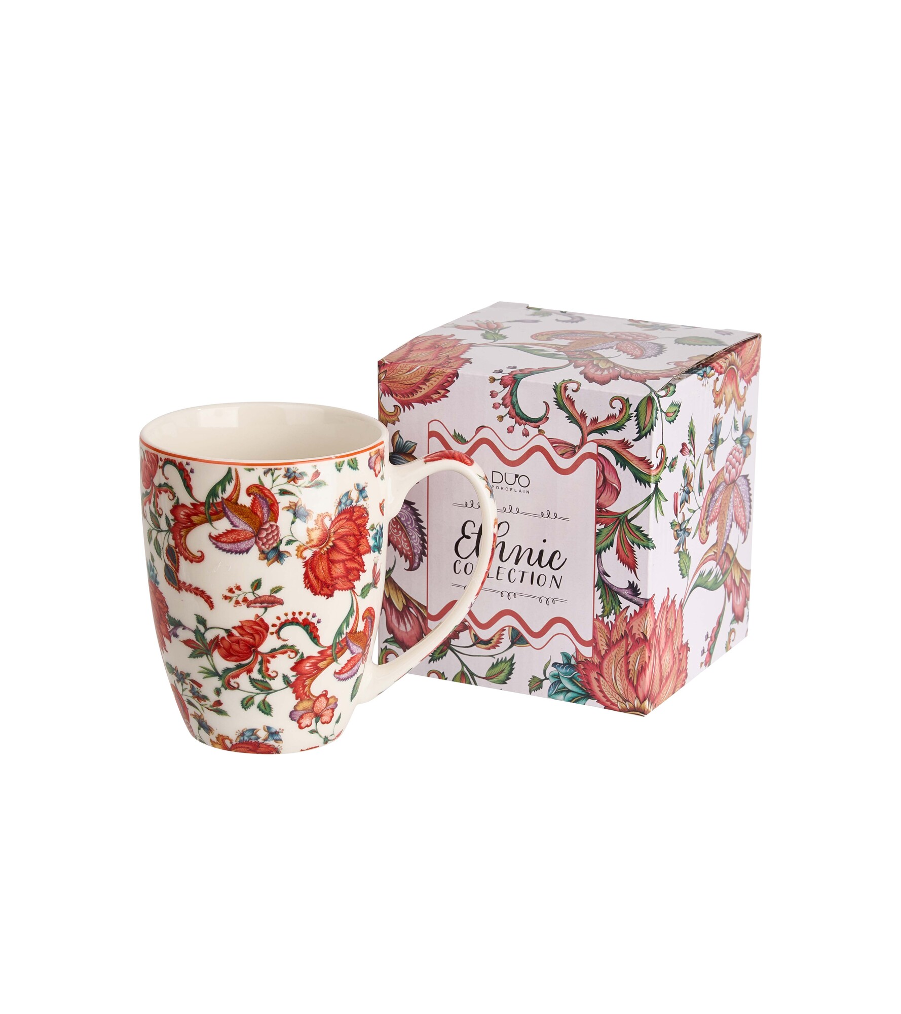 Kubek classic PRIMAVERA wchodzący w skład linii ETHNIC, wykonany z porcelany New Bone China, charakteryzującej się elegancką i naturalną kremowo - białą barwą z delikatnym połyskiem a także wyjątkową wytrzymałością przy zachowaniu lekkości i delikatności.