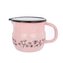Hrnek smaltovaný baňatý s hubičkou je vhodný na všechny typy spotřebičů. Vhodný do myčky nádobí. Rozměry: pr. 10 cm, v. 9,5 cm, objem 0,8 l. Barva růžová, dekor LOUKA.