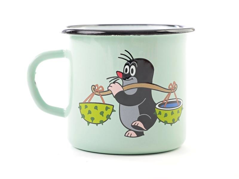 Krtek - hrnek smaltovaný 8cm, mátový/ kaštan
