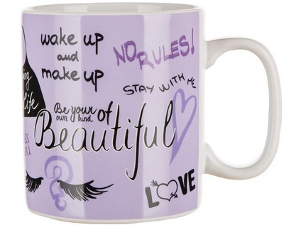 Fialový hrnek je vyroben z keramiky, vhodný na horké i studené nápoje.