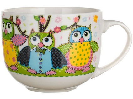 Hrnek JUMBO 500 ml s motivem sov nabízí dostatečný objem na vaše oblíbené horké i studené nápoje. Jeho ergonomický tvar zaručuje pohodlné držení a příjemný požitek z pití. Díky kvalitní keramice si nápoj udrží svou teplotu déle a zároveň hrnek snadno umyjete. Bílý podklad s pěknou dekorací sov zapadne jak do moderní, tak i tradiční kuchyně.
